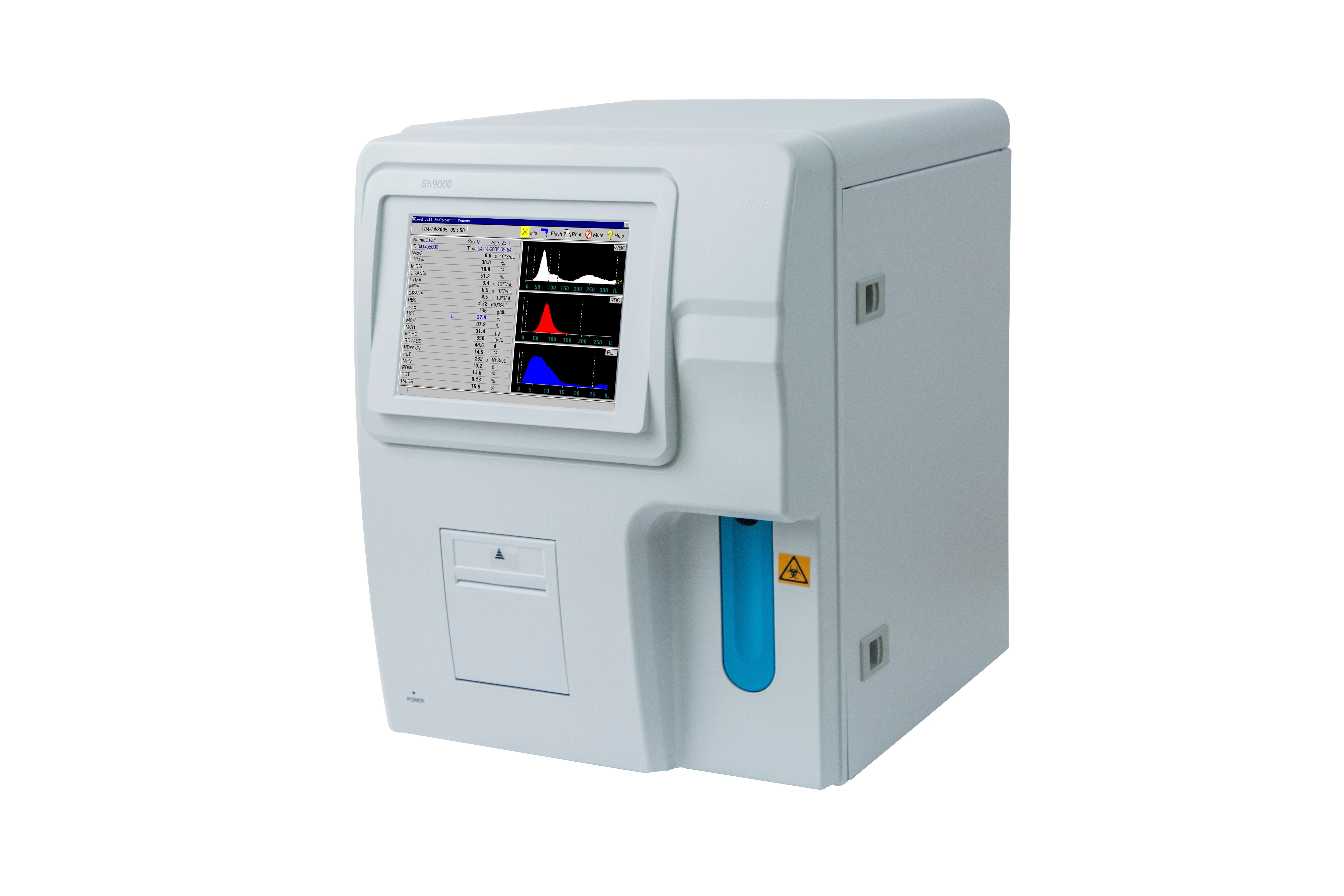 Parametri: differenziazione WBC a 3 parti; 20 parametri e 3 istogrammi a colori (WBC, RBC, PLT)